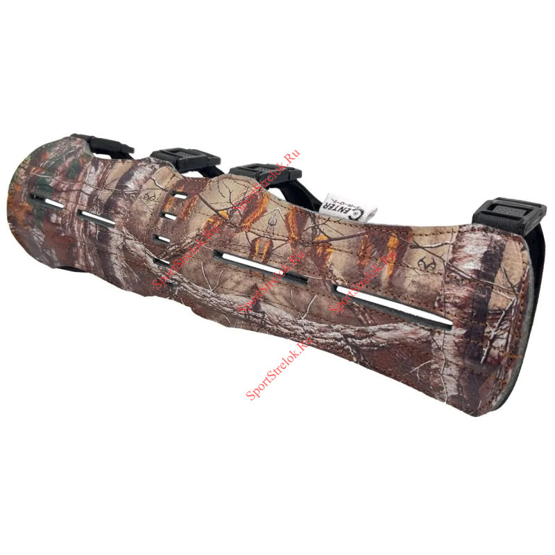 Крага Centershot 33см надевается на внутреннюю часть предплечья для защиты руки и элементов одежды от контакта с тетивой. Крага фиксируется на предплечье с помощью четырех эластичных ремешков с застежками "Фастекс". Разработана для профессиональной охоты с луком, но также используется для традиционной или спортивной стрельбы.